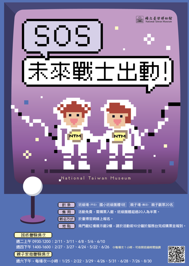 二、本館訂於114年1月24日(星期五)、1月25日(星期六)及2月7 日(星期五)假南門館(臺北市中正區南昌路一段1號)辦理三 梯次教師研習課程,請轉知所屬並鼓勵教師報名參加。參 與研習之教師,將依課程時長核發研習及環境教育時數。
